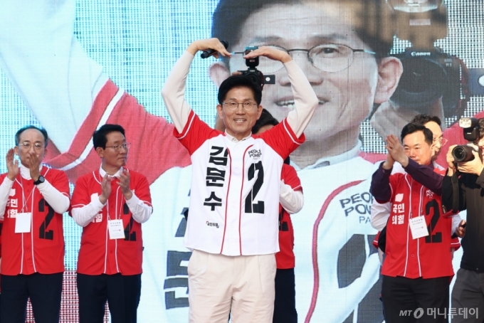 김 후보는 한덕수 전 국무총리와의 단일화를 둘러싸고 당 지도부, 당내 갈등이 불거진 것에 대해 "권영세 전 국민의힘 비상대책위원장이 책임을 지고 그만두지 않았느냐"고 했다.