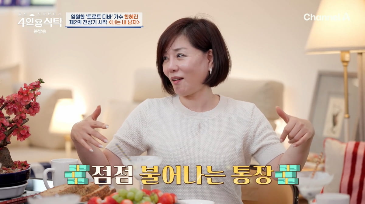 이어 '너는 내 남자' 등이 줄줄이 히트한 한혜진은 "7~8개 행사 스케줄을 감당 못 해 몸이 부서졌다. 잠을 못 잤고, 화장실 못 갈 정도로 바빴다. 통장에 돈이 막 쌓였는데 돈 쓸 시간이 없었다"고 자랑했다.
