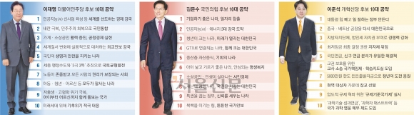 김 후보 역시 1호 공약으로 ‘기업하기 좋은 나라, 일자리 창출’를 내세우며 경제 회복을 강조했다. 경기지사 시절 국내 투자를 망설이는 삼성전자를 찾아가 설득한 끝에 ‘120만평의 세계 최대 규모 평택 반도체 공장’을 유치한 경험을 부각하기 위한 공약이다.