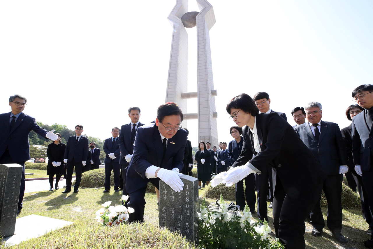 5·18민주화운동 45주년을 열흘 앞둔 8일 문인 광주 북구청장이 북구 운정동 국립5·18민주묘지에서 오월 영령을 기리기 위해 참배하고 있다. 2025.5.8 [광주 북구 제공. 재판매 및 DB 금지] <연합뉴스> |
