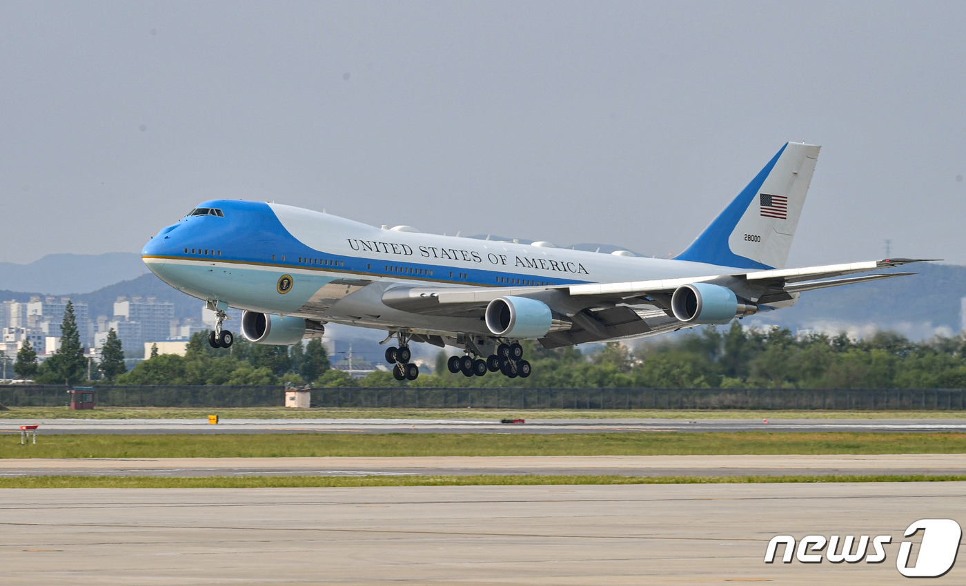 조 바이든 미국 대통령이 탑승한 에어포스원이 20일 경기도 오산 미 공군기지에 착륙하고 있다. 바이든 대통령은 20~22일 한국, 22~24일 일본을 순차적으로 방문한다. 2022.5.20/뉴스1 ⓒ News1 사진공동취재단 |