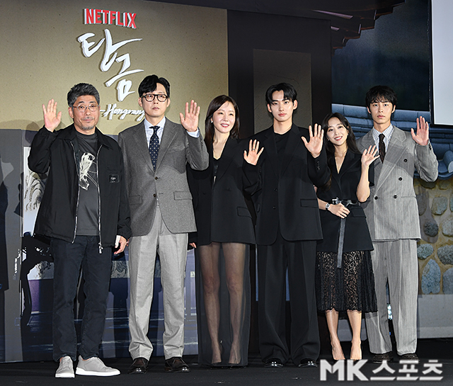김홍선 감독, 박병은, 엄지원, 정가람, 조보아, 이재욱이 포토타임을 갖고 있다.
