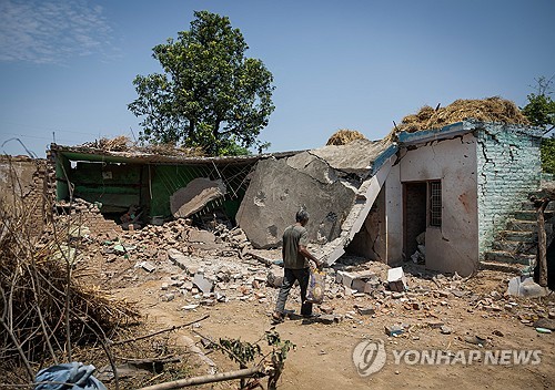 인도-파키스탄 충돌로 파괴된 카슈미르 마을 |