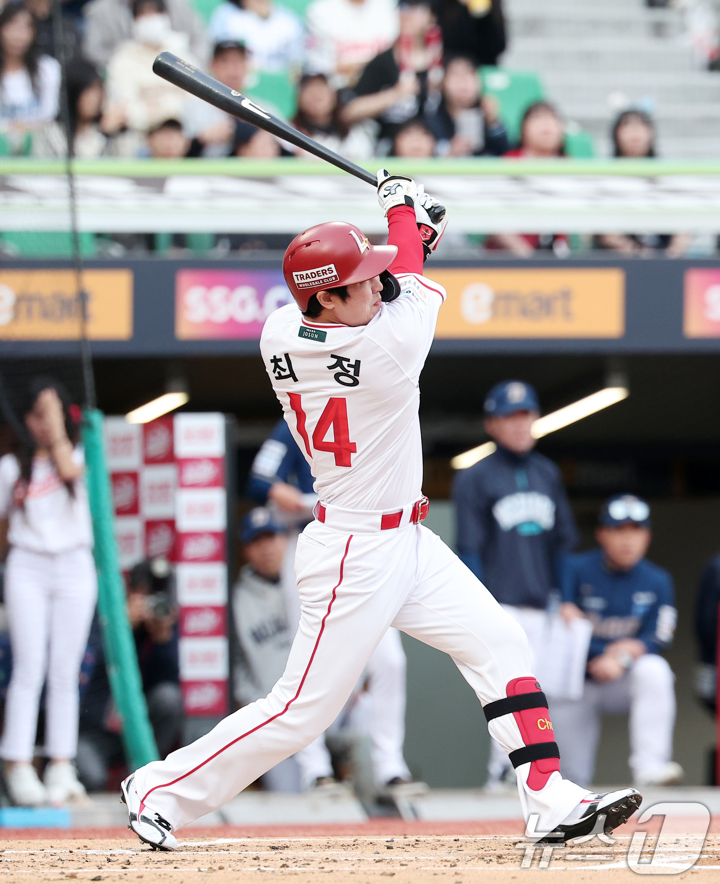 13일 인천SSG 랜더스필드에서 열린 '2025 신한 SOL뱅크 KBO리그' NC 다이노스와 SSG 랜더스의 경기, SSG 최정이 타격하고 있다. 2025.5.13/뉴스1 ⓒ News1 김성진 기자
