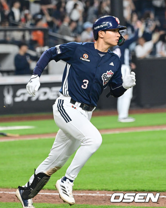 [OSEN=대전, 김성락 기자] 13일 대전 한화생명볼파크에서 ‘2025 신한 SOL Bank KBO리그’ 한화 이글스와 두산 베어스의 경기가 열렸다.이날 한화는 류현진, 두산은 최원준을 선발로 내세웠다.연장 11회초 2사 2루 두산 임종성이 재역전 1타점 적시 2루타를 날린 뒤 진루하고 있다. 2025.05.13 / ksl0919@osen.co.kr |