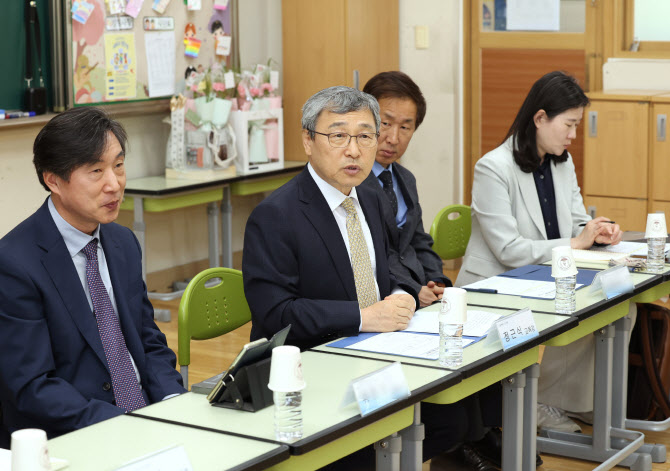 정근식 서울시교육감이 13일 오후 서울 서초구 서이초등학교를 방문해 학교구성원 등과 ‘교육공동체의 회복과 건강한 교육활동 지원 방안’을 주제로 간담회를 하고 있다. (사진=뉴시스) |