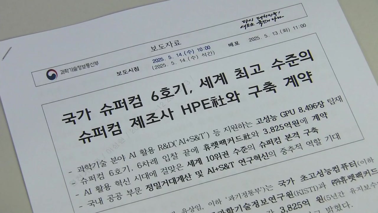 '한국형 AI'로 기대를 모은 슈퍼컴퓨터 6호기가 여섯 차례의 입찰 끝에 드디어 계약을 마치고 구축 절차에 들어갑니다.