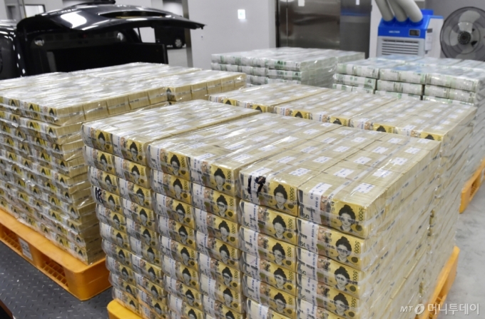 민족 대명절인 설(구정) 연휴가 다가오는 가운데 14일 서울 중구 남대문로 한국은행 본점에서 시중은행에 공급될 명절 자금이 방출에 앞서 정돈되어 있다. /사진=머니S |