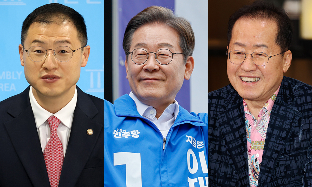(왼쪽부터) 무소속 김상욱 의원, 더불어민주당 이재명 대선 후보, 홍준표 전 대구시장. 뉴시스 |
