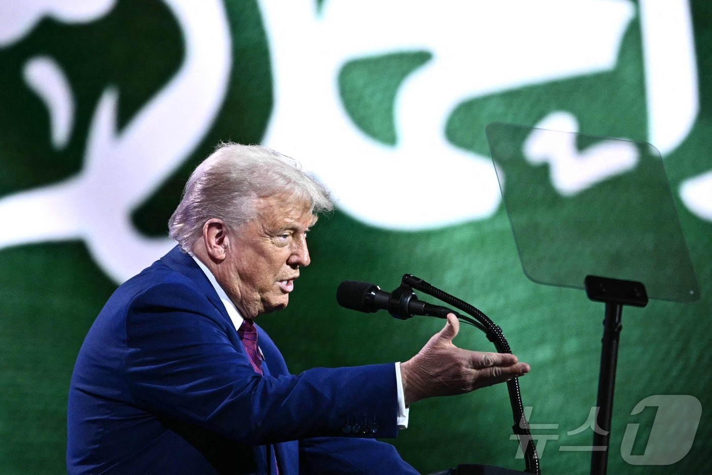 도널드 트럼프 미국 대통령이 13일(현지시간) 중동 순방 중 사우디아라비아 리야드에서 열린 '사우디-미국 투자 포럼'에 참석해 연설하고 있다. 2025.05.14 ⓒ AFP=뉴스1 ⓒ News1 우동명 기자 |