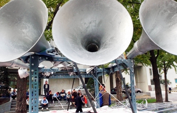 2001년 서울시청 앞 확성기 시위 모습. 서울신문 DB (기사와 직접 관계 없음) |