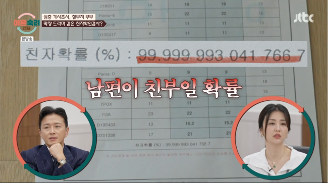 남편은 시댁과의 문제도 있었다고 밝혔다. 남편의 어머니는 찬지 확인 검사를 며느리에게 강요했다고. 결국 아내는 첫째의 친자확인검사를 했고, 남편은 친부가 맞았다. 이 사건은 아내의 마음에 커다란 상처를 안겼다.