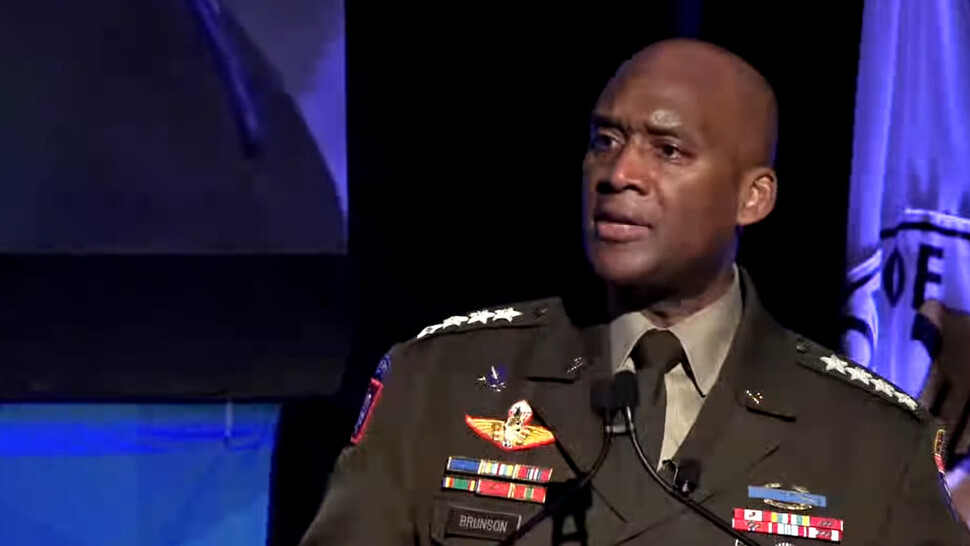 제이비어 브런슨 주한미군사령관이 15일(현지시각) 하와이에서 열린 미국 육군협회(AUSA) 태평양지상군(LANPAC) 심포지엄에서 발언하고 있다. 미국 육군 태평양사령부 유튜브 갈무리 |