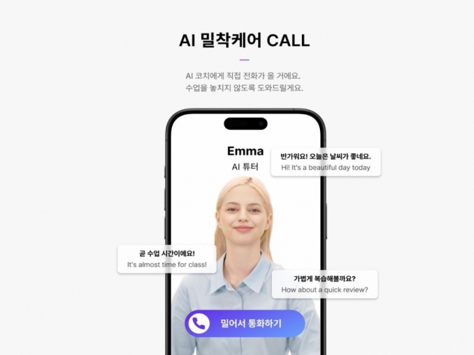 이 서비스는 학습자가 원하는 시간에 AI 튜터가 전화를 걸어 영어 예습, 복습 및 학습 리마인드 등 상황에 맞는 공부를 할 수 있도록 한다. 통화를 통해 오늘의 영어 표현 학습과 발음도 교정받을 수 있다.