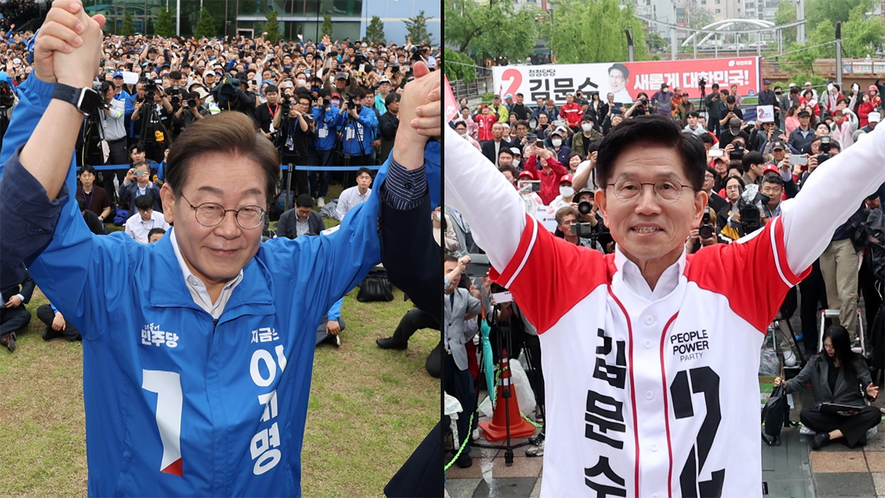이재명 더불어민주당 대선 후보가 과반 지지율을 기록하며 김문수 국민의힘 후보를 오차 범위 밖에서 앞서는 여론조사 결과가 나왔습니다.