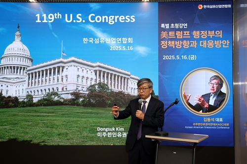 16일 한국섬유산업연합회가 서울 강남구 섬유센터에서 개최한 '미 트럼프 행정부의 정책방향과 대응방안' 특별초청강연에서 김동석 미주한인유권자연대(KAGC) 대표는 "한국 정부의 모든 자원과 전문성을 통합해 미국 정부와의 협상에 대비해야 한다"며 이같이 말했다.