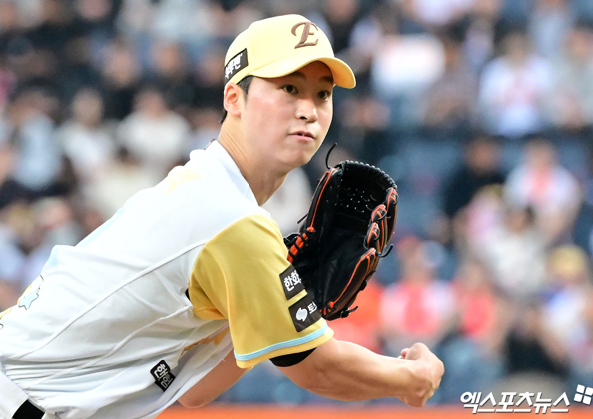 시즌 첫 등판이었던 3월 26일 잠실 LG전에서는 4⅔이닝 2실점을 했고, 지난달 6일 대구 삼성전과 12일 대전 키움전에서 3이닝 3실점을 기록하며 3경기 연속 5이닝을 버티지 못하고 패전투수가 됐다. 이후 4월 18일 대전 NC전에서 5이닝 4실점으로 첫 승, 25일 대전 KT전에서는 6이닝 1실점 퀄리티스타트를 작성하며 안정감을 찾는 듯했다.