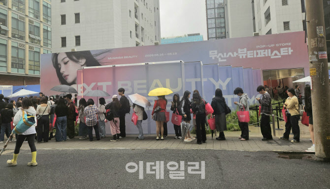 서울 성수동 무신사 스퀘어 성수4에서 열린 ‘무신사 뷰티 페스타’ 입구에 긴 대기줄이 이어져 있다. (사진=김정유 기자) |