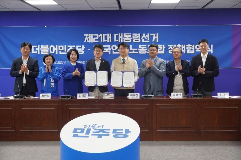 전국언론노동조합은 더불어민주당 중앙선거대책위원회와 지난 15일 미디어 정책 협약을 맺으며 7대 공약을 제안했다. 여기엔 '통합 미디어 기구 설치를 미디어 진흥·규제 체제 정비'를 비롯해 △공영방송의 정치적 독립을 위한 '방송 3법' 신속 제정 △윤석열 정권 언론장악 진상규명 △신문 편집의 독립성 확보와 정부 광고 집행 등의 내용이 담겼다. 언론노조 측은 "이준석 개혁신당 후보, 권영국 민주노동당 후보 측과도 정책 협약을 추진 중"이라고 밝혔다.