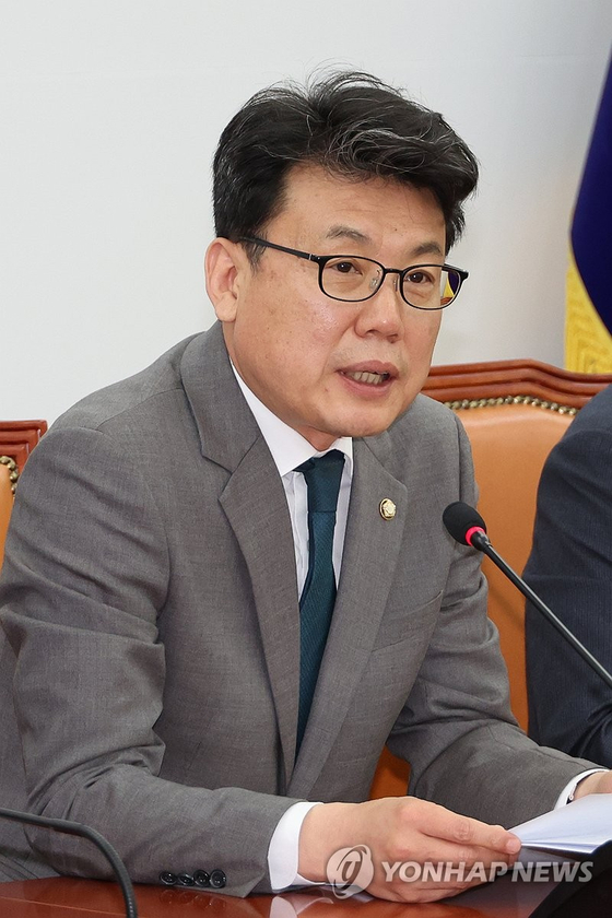 더불어민주당 진성준 정책위의장이 지난달 29일 서울 여의도 국회에서 열린 원내대책회의에서 발언하고 있다. 〈사진=연합뉴스〉 |