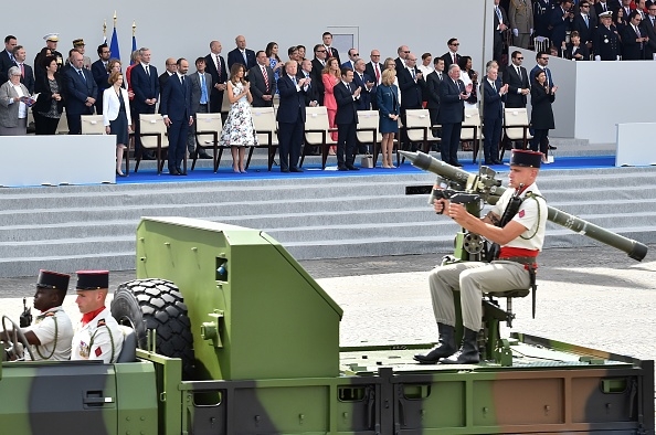 2017년 7월 14일 프랑스 파리에서 도널드 트럼프 대통령과 맬러니아 영부인 등이 혁명기념일 기념 열병식을 참관하고 있다. [게티이미지] |