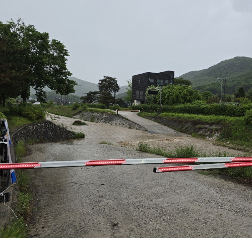 16일 쏟아진 폭우로 경기 남양주시 별내면 청학리 세월교가 통제된 모습/사진=남양주시 |