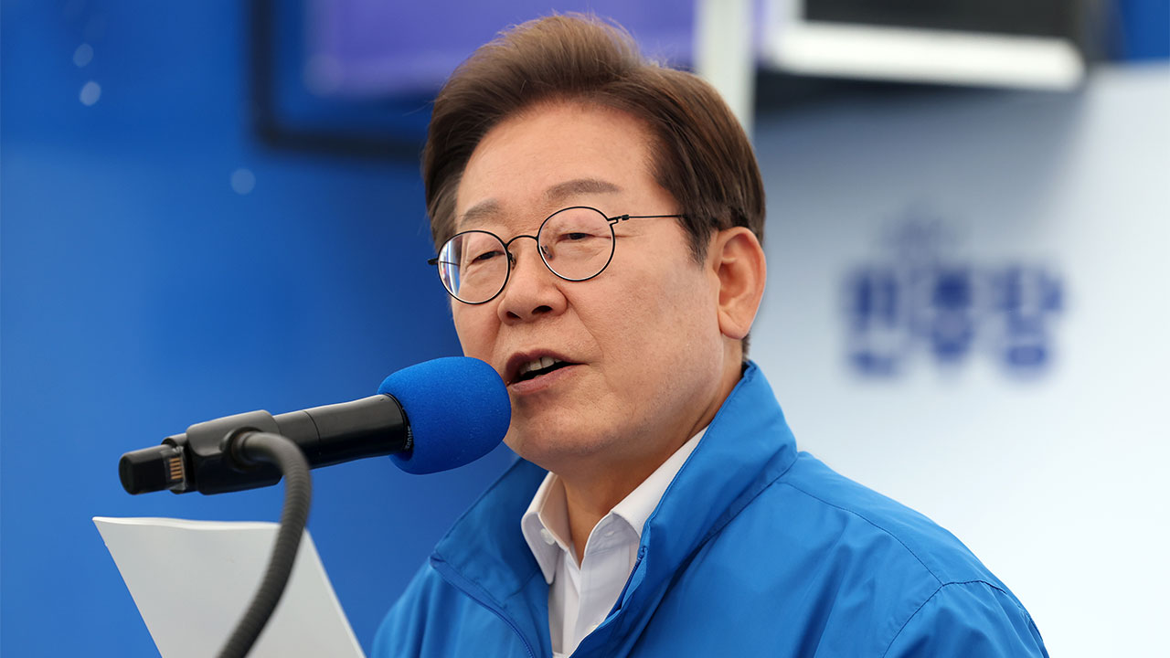 ▲ 더불어민주당 이재명 대선 후보가 16일 전북 전주시 전북대 후문에서 열린 유세에서 지지를 호소하는 연설을 하고 있다.