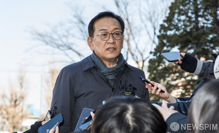 [서울=뉴스핌] 사진공동취재단 =윤석열 대통령 측 변호인인 석동현 변호사가 20일 서울 종로구 헌법재판소에서 열린 윤석열 대통령 탄핵심판 10차 변론기일에 출석하며 취재진의 질문에 답하고 있다. 2025.02.20 photo@newspim.com |
