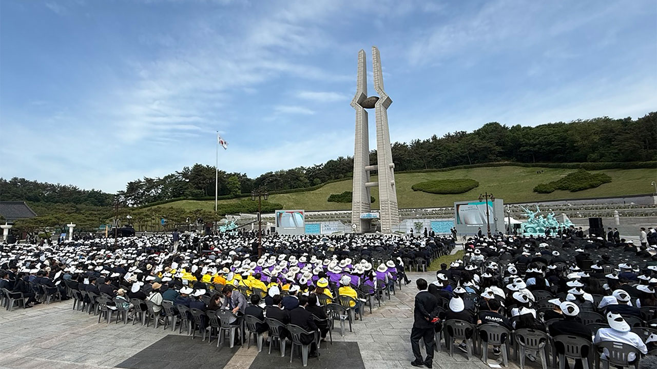 '함께, 오월을 쓰다'를 주제로 열린 기념식에는 5·18 민주유공자와 유족, 이주호 대통령 권한대행 부총리 겸 교육부 장관을 비롯한 정부 주요 인사, 각계 대표, 학생 등 2천500여 명이 참석했습니다.