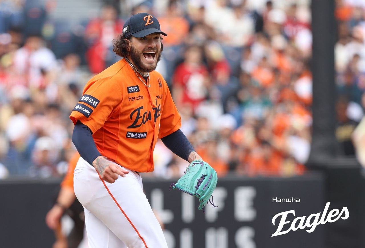 한화 이글스가 한국프로야구(KBO) 홈 경기 연속 매진 신기록을 세웠다. 사진은 17일 KBO 정규이닝 한 경기 최다 탈삼진(18개) 신기록을 세운 코디 폰세(31·한화 이글스 [연합] |