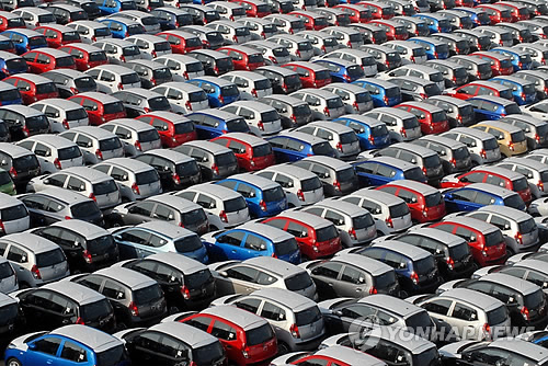 수출 대기중인 한국산 차량 |