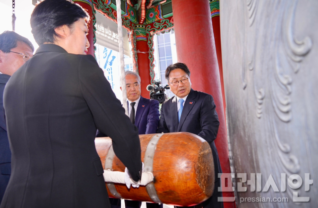 ▲광주광역시(시장 강기정)는 제45주년 5·18민주화운동을 기념하기 위해 5월18일 오후 5시18분 5·18민주광장 민주의 종각에서 '민주의 종 타종식'을 진행하고 있다. ⓒ광주광역시 |