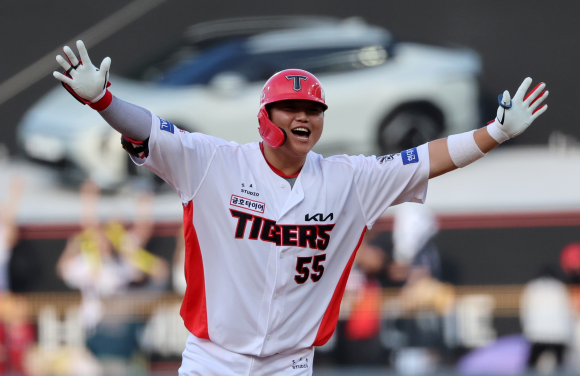 18일 광주기아챔피언스필드에서 열린 프로야구 두산 베어스와 KIA 타이거즈의 경기. KIA 한준수가 4-4로 맞선 연장 10회말 1사 1, 2루에서 끝내기 2루타를 치고 환호하고 있다. 2025.5.18 광주 연합뉴스 |
