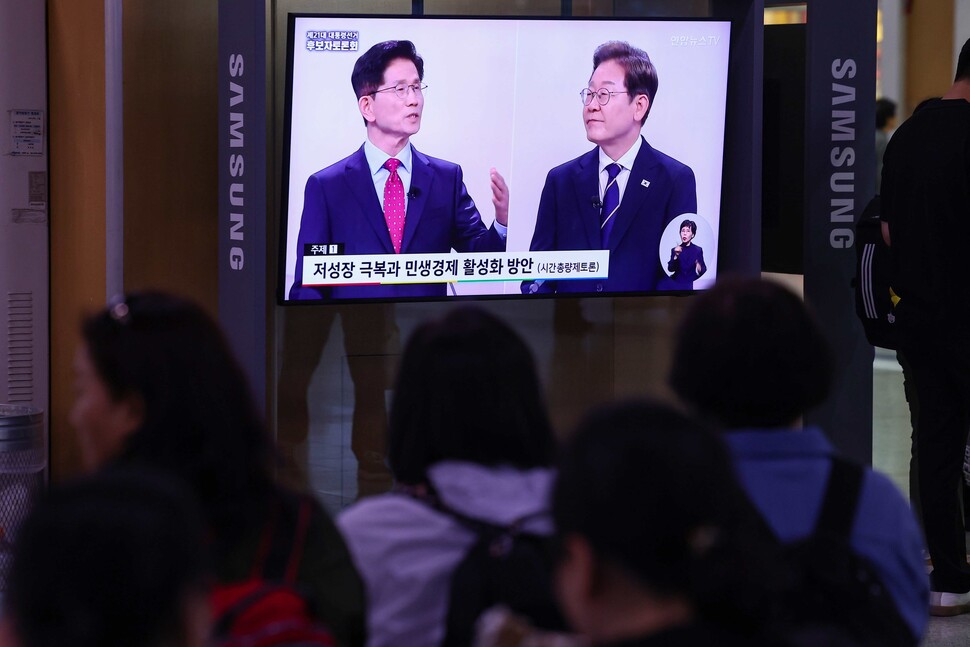 18일 서울역 대합실에서 시민들이 제21대 대선 1차 후보자 토론회 중계방송을 지켜보고 있다. 연합뉴스 |