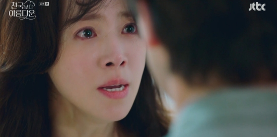 (엑스포츠뉴스 이이진 기자) '천국보다 아름다운' 한지민이 과거 기억을 찾는 과정에서 손석구와 갈등을 빚었다.