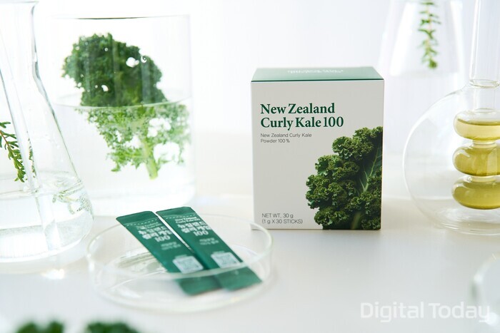 해당 제품은 뉴질랜드 남알프스 청정 지역에서 자란 프리미엄 고대 품종 컬리케일을 100% 사용한 것이 특징이다. 일반 케일과 달리 곱슬한 잎을 가진 고유 품종으로, 화학비료나 합성 농약 없이 재배돼 자연 본연의 영양과 순수성을 담았다. 또 비타민 C, 철분, 칼슘, 마그네슘, 베타카로틴 등 총 71종의 영양소를 함유하고 있어 세포 손상을 줄이고 노화 속도를 늦추는 데 도움을 주는 항산화 슈퍼푸드로도 주목 받고 있다. 1g 스틱형 개별 포장으로 제작돼 외부 오염을 방지하면서도 언제 어디서나 간편하게 섭취할 수 있는 휴대성과 실용성까지 갖췄다.