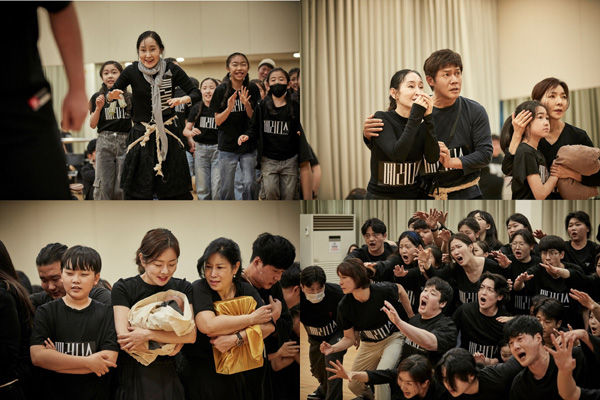 오늘(14일) 공개된 연습실 사진은 극 중 인도적 결단을 내리는 메러디스 빅토리호의 선장 '라루 선장' 역의 하도권, 전쟁 속에서도 가족과 피란민을 지키려는 외신기자 '윤봉식' 역의 박호산을 비롯해 전 배우, 스태프들이 혼연일체가 되어 뜨거운 에너지를 주고받는 연습 현장의 열기를 고스란히 담고 있다.