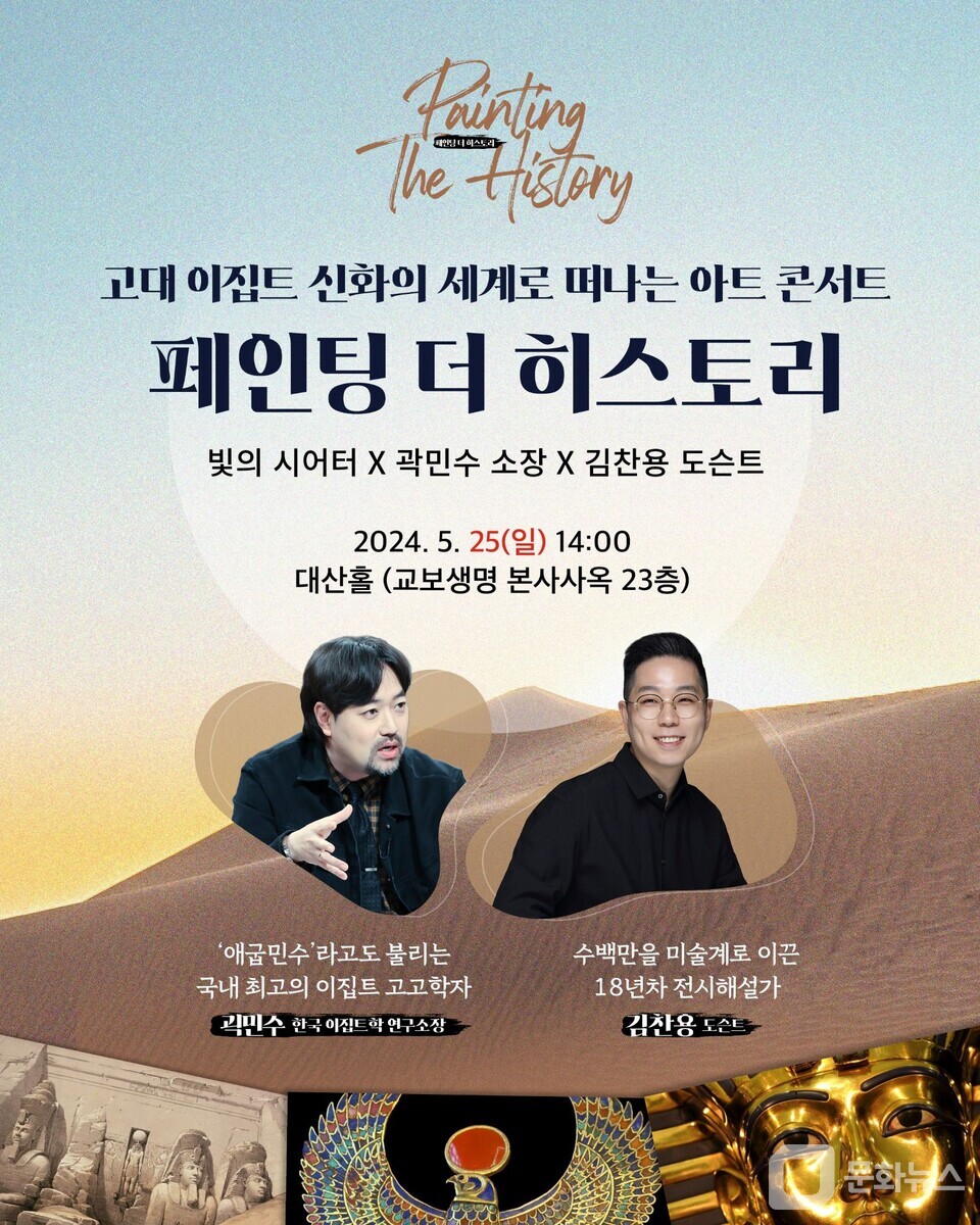 '페인팅 더 히스토리: 이집트 편'은 빛의 시어터에서 전시 중인 '파라오의 이집트: 빛으로 깨어난 고대 문명'과 연계해 고대 이집트 문명의 신화와 예술을 깊이 있게 탐구하는 아트 콘서트로, 오는 25일 서울 광화문 교보빌딩 23층 대산홀에서 진행된다.