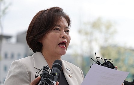 19일 경기북부경찰청에서 조국혁신당 정춘생 국회의원이 윤석열 전 대통령 처가가 운영하는 남양주 요양원 노인학대 피소 사건에 대해 발언하고 있다. 연합뉴스 제공 |
