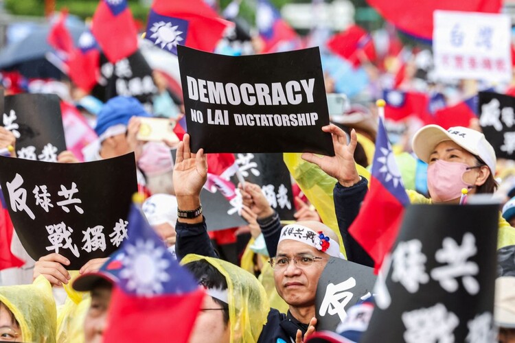 지난달 26일 대만 타이베이에서 야당인 국민당이 주최한 반라이칭더 시위가 열렸다. 라이칭더 대만 총통은 20일 취임 1주년을 맞는다. 타이베이/AFP 연합뉴스 |