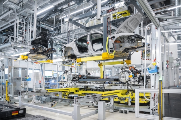 특히 포르쉐는 라이프치히 공장에서 내연기관 스포츠유틸리티차(SUV) ‘마칸’, 세단 ‘파나메라’와 함께 전기 SUV인 ‘마칸 일렉트릭’, 파나메라 하이브리드 모델을 생산한다. 내연기관차와 전기차, 하이브리드차를 한 라인에서 혼류 생산하는 체제는 글로벌 전기차 ‘캐즘’(일시적 수요 정체)을 비롯한 시장 변화에 유연하게 대응하기 위한 포석이다.