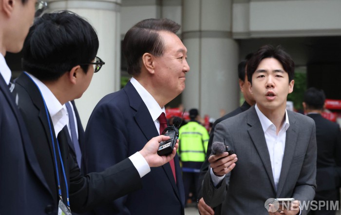 [서울=뉴스핌] 사진공동취재단 = 윤석열 전 대통령이 19일 오후 서울 서초구 서울중앙지방법원에서 열린 내란 우두머리 혐의, 직권남용 권리행사방해 혐의 사건 4차 공판을 마친 뒤 법정을 나서고 있다. 2025.05.19 yym58@newspim.com