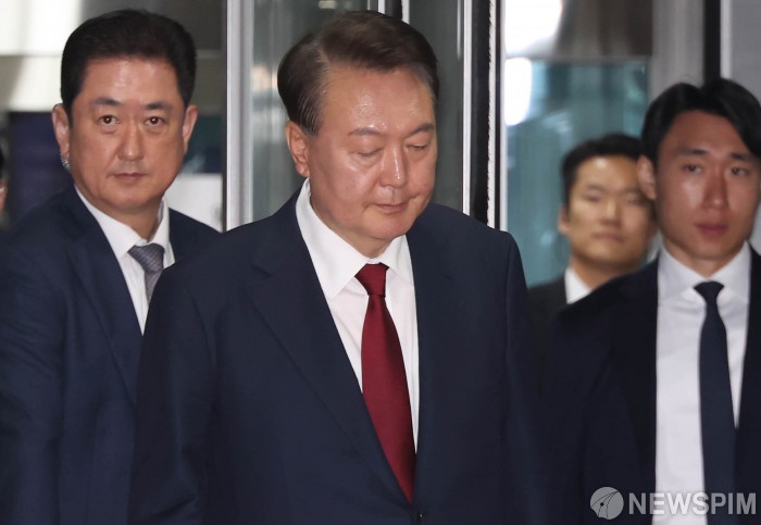 [서울=뉴스핌] 사진공동취재단 = 윤석열 전 대통령이 19일 오후 서울 서초구 서울중앙지방법원에서 열린 내란 우두머리 혐의, 직권남용 권리행사방해 혐의 사건 4차 공판을 마친 뒤 법정을 나서고 있다. 2025.05.19 yym58@newspim.com