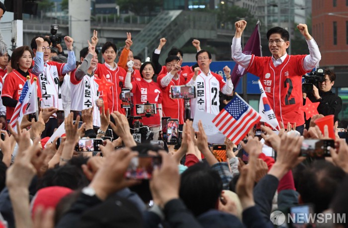 [서울=뉴스핌] 최지환 기자 = 국민의힘 김문수 대선후보가 19일 오후 서울역광장에서 유세를 갖고 지지자들을 향해 주먹을 쥐어보이고 있다. 2025.05.19 choipix16@newspim.com |