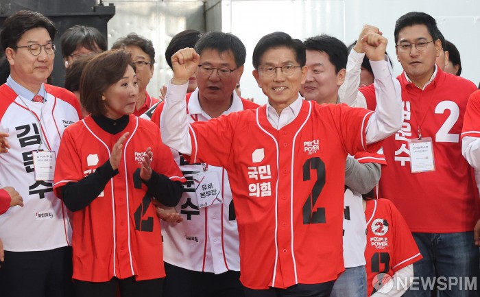 [서울=뉴스핌] 최지환 기자 = 김문수 국민의힘 대선 후보가 19일 오후 서울 중구 서울역 광장에서 열린 ‘쏘울을 새롭게’ 유세에서 유권자들에게 지지를 호소하고 있다. 2025.5.19 choipix16@newspim.com