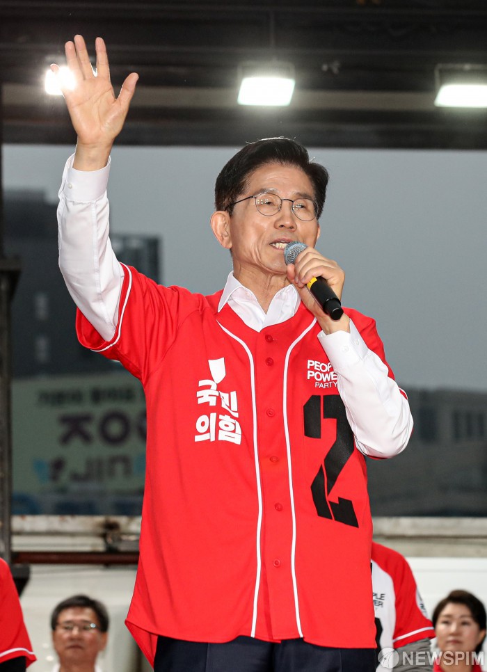[서울=뉴스핌] 최지환 기자 = 김문수 국민의힘 대선후보가 19일 오후 서울 용산구 서울역 광장에서 열린 유세에서 지지를 호소하고 있다. 2025.05.19 choipix16@newspim.com