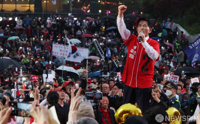 [서울=뉴스핌] 최지환 기자 = 김문수 국민의힘 대선후보가 19일 오후 서울 용산구 서울역 광장에서 열린 유세에서 지지를 호소하고 있다. 2025.05.19 choipix16@newspim.com |