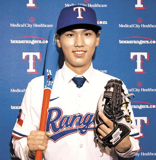 김성준은 고교 2학년 때부터 150㎞가 넘는 강속구에 내야수 능력까지 갖춰 국내외 관심을 받았다. 올 하반기 신인 드래프트에서 전체 1순위 후보로도 거론됐다. 하지만 다저스의 슈퍼스타 오타니 쇼헤이가 롤 모델인 김성준은 국내 무대에서는 투타 겸업이 어렵다고 판단, 레인저스의 손을 잡았다.
