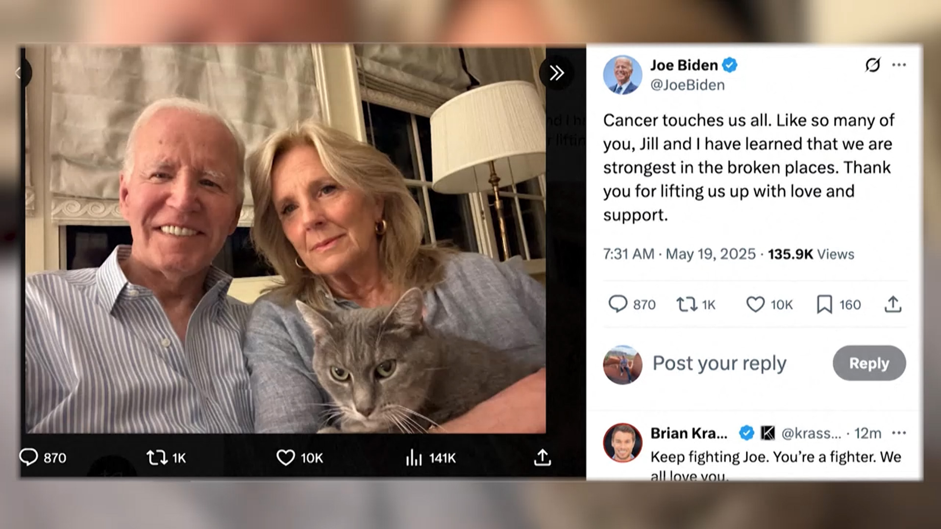 전립선 암 진단을 받은 조 바이든 전 미국 대통령은 "사랑과 지지로 우리를 응원해줘서 감사하다"라고 밝혔습니다.