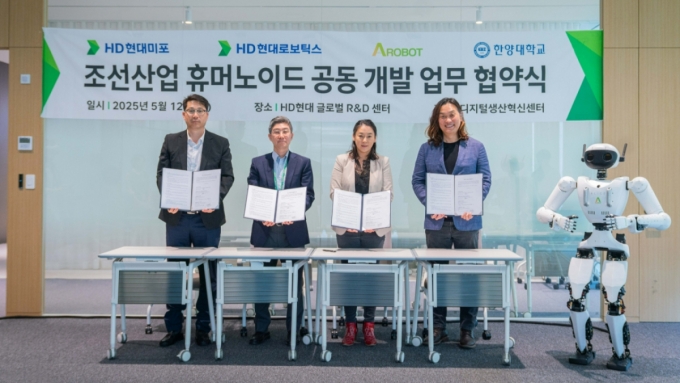 휴머노이드 로봇 전문 개발기업 에이로봇이 한양대학교, HD현대미포, HD현대로보틱스와 '산업현장 적용을 위한 휴머노이드 로봇 실증기술 개발' 관련 4자 업무협약을 체결했다고 20일 밝혔다.